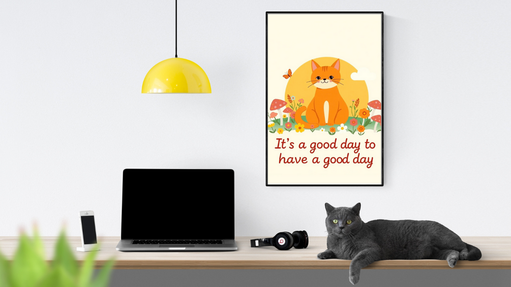 Elevate your space with this adorable and inspiring cat print! ✨ Click Buy Now to download and start decorating today. 🎨🐱